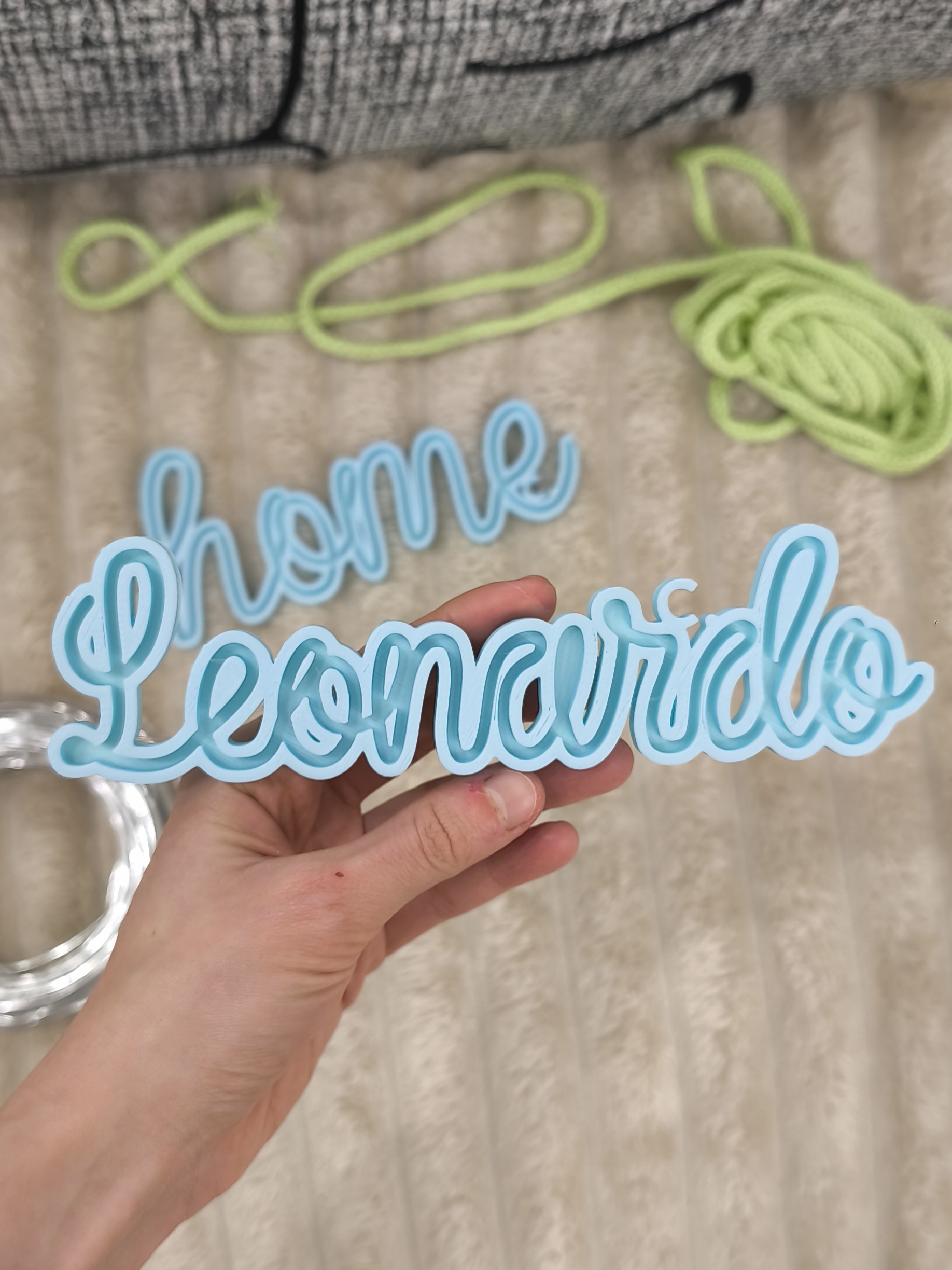 Telaio Scritta Personalizzata con font corsivo, ideale per realizzare nomi a Tricotin per fiocchi nascita e decorazioni handmade.